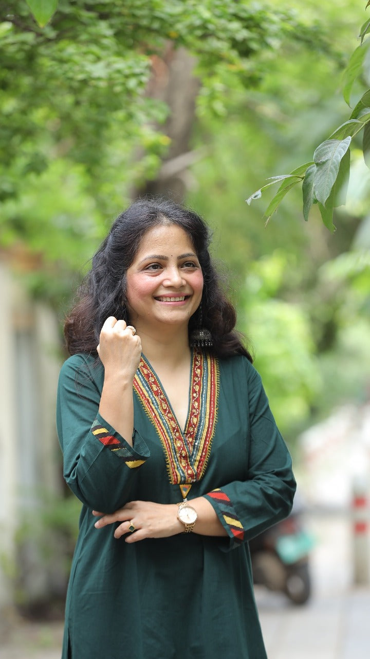 Bottle Green Colour Applique Work Premium Cotton Dupatta Set