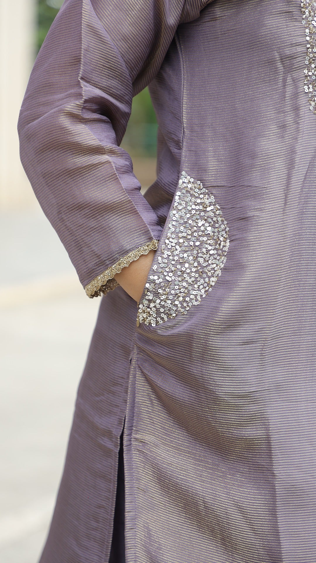 Dusty Lavender Colour Tissue Silk Banarsi Dupatta Set