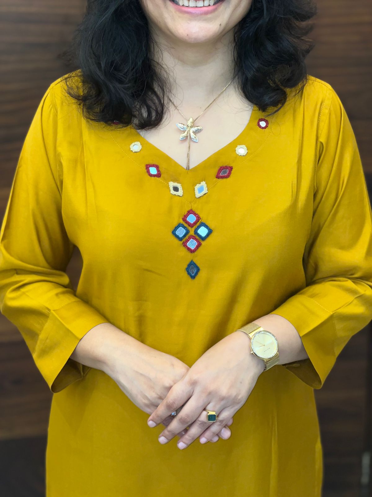Golden-Yellow Color Modal Muslin Dupatta Set