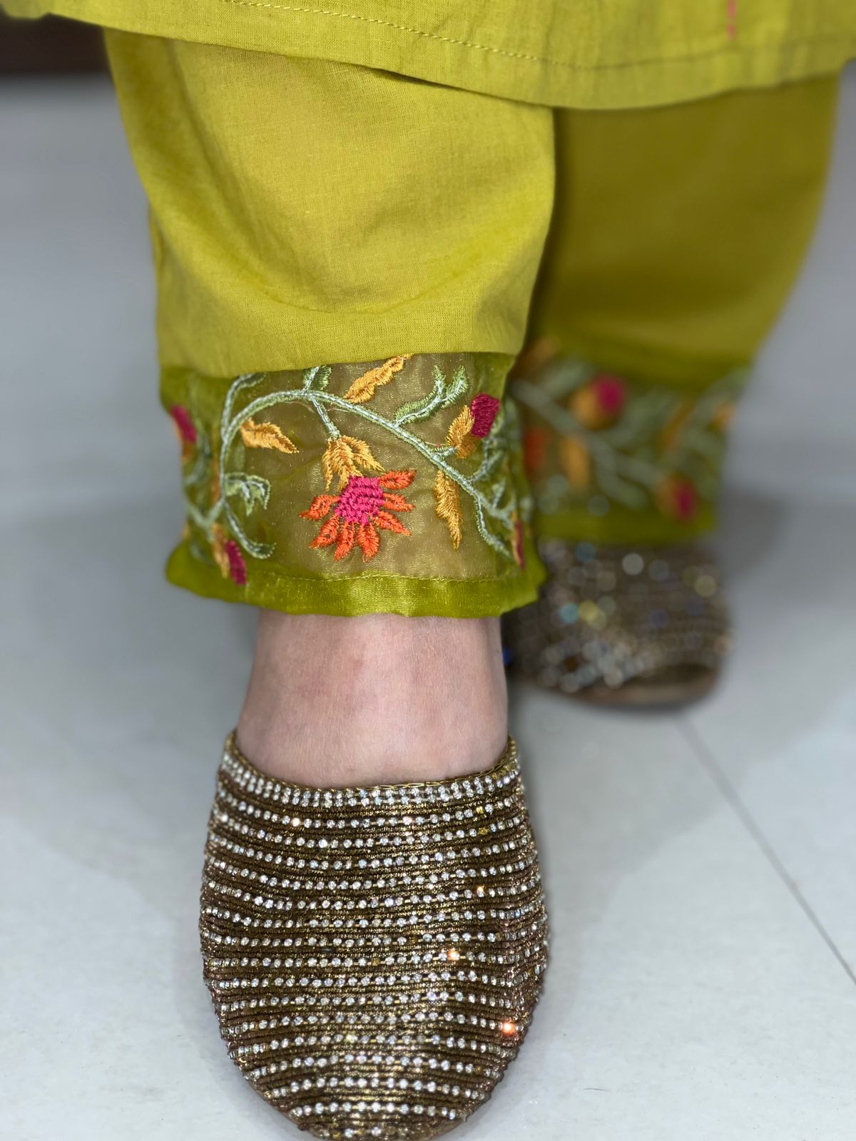 Greenish-Yellow Color Pure Cotton Dupatta Set