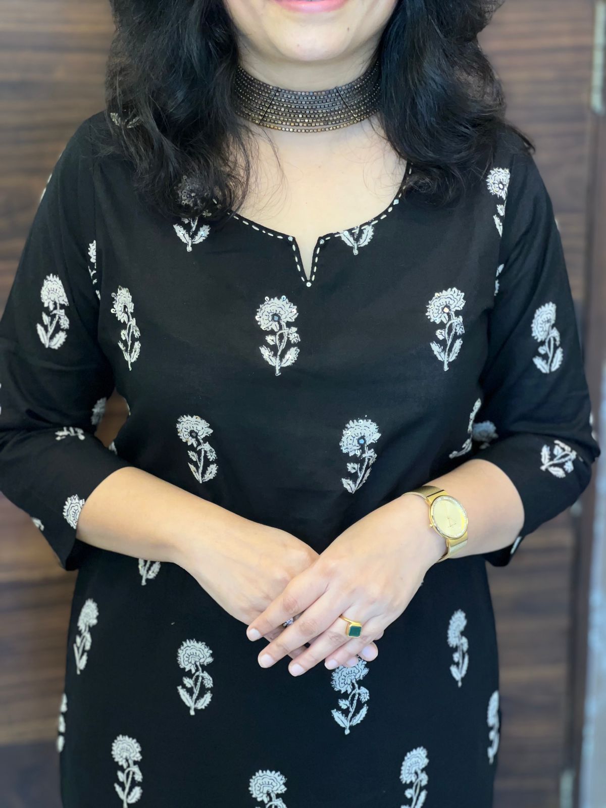Hand-Block Printed Black Color Pure Cotton Dupatta Set