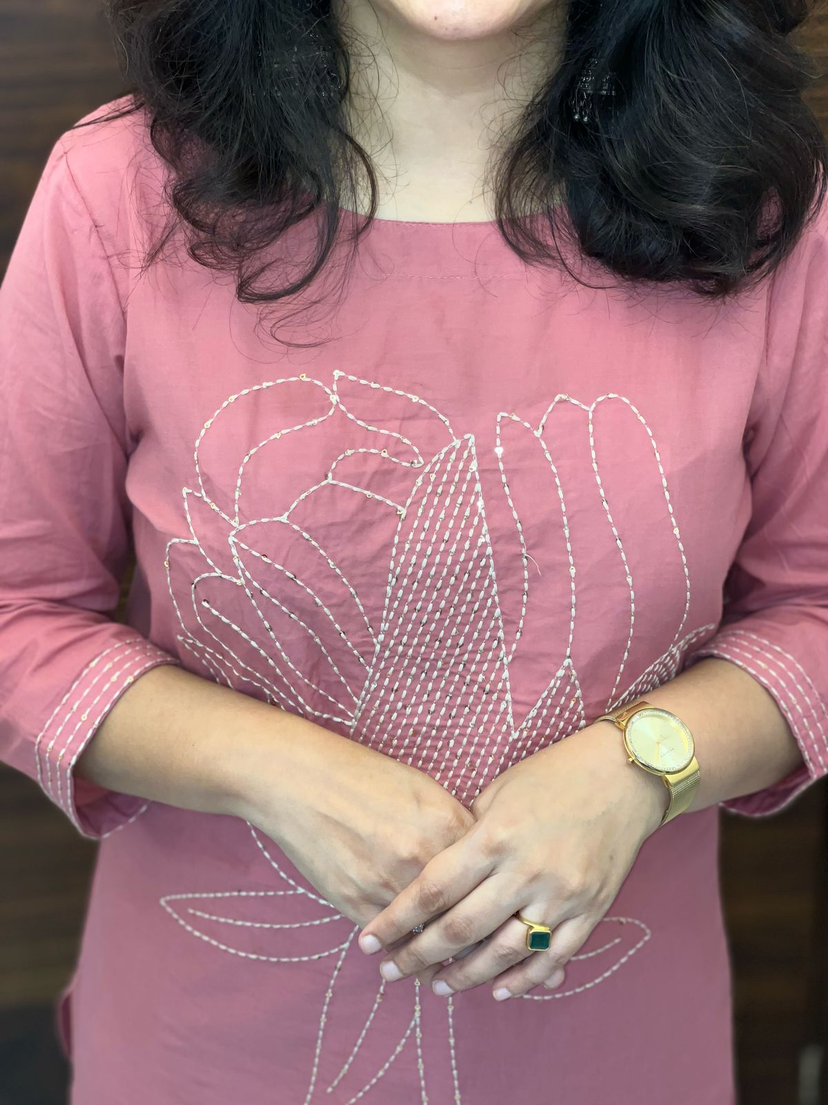 Mauve Pink Colour Cotton-Rayon MixDupatta Set