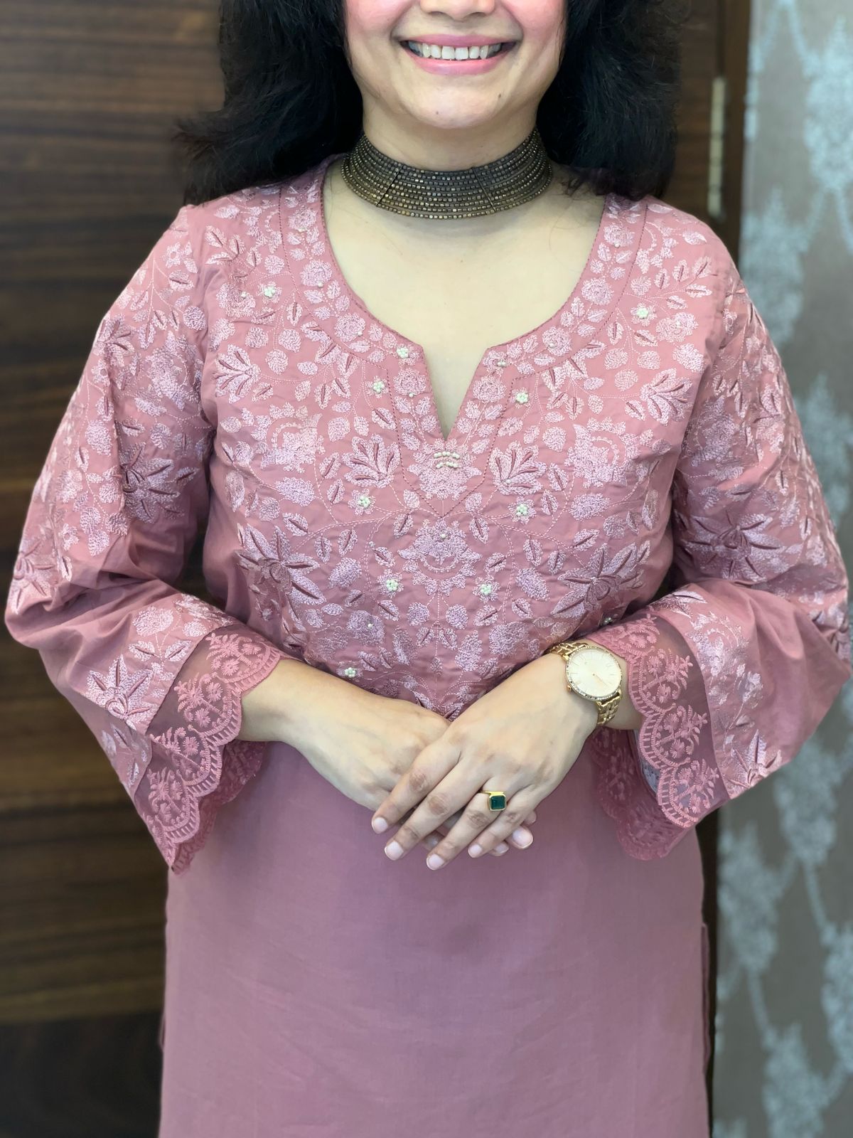 Mauve Pink Colour Tone On Tone Pure Cotton Dupatta Set