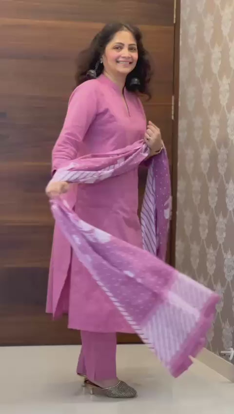 Mauve Pink Colour Tone & Tone Premium Cotton Dupatta Set