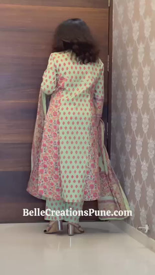 Mint Green Color Pure Cotton Dupatta Set